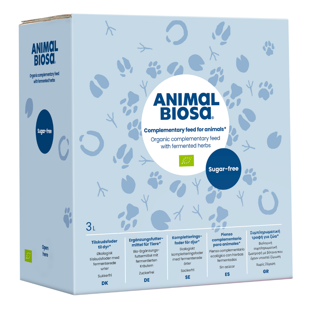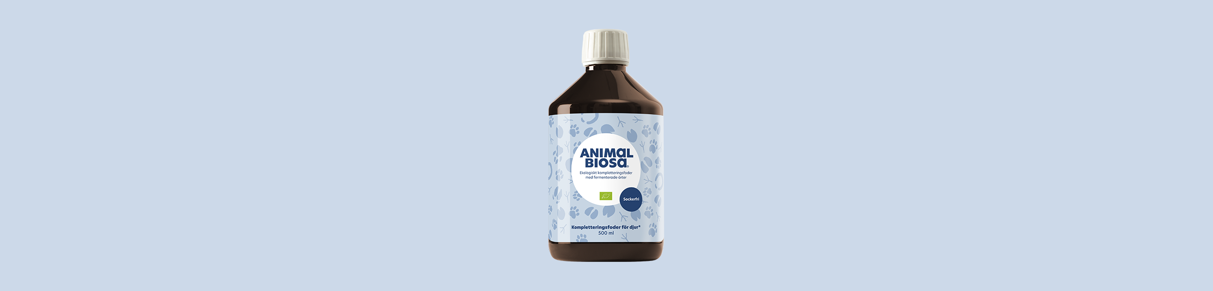 Animal Biosa är ett ekologiskt flytande kompletteringsfoder med fermenterade örter som hjälper till att hålla magen och tarmarna i balans.
